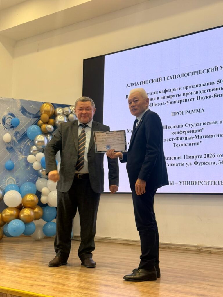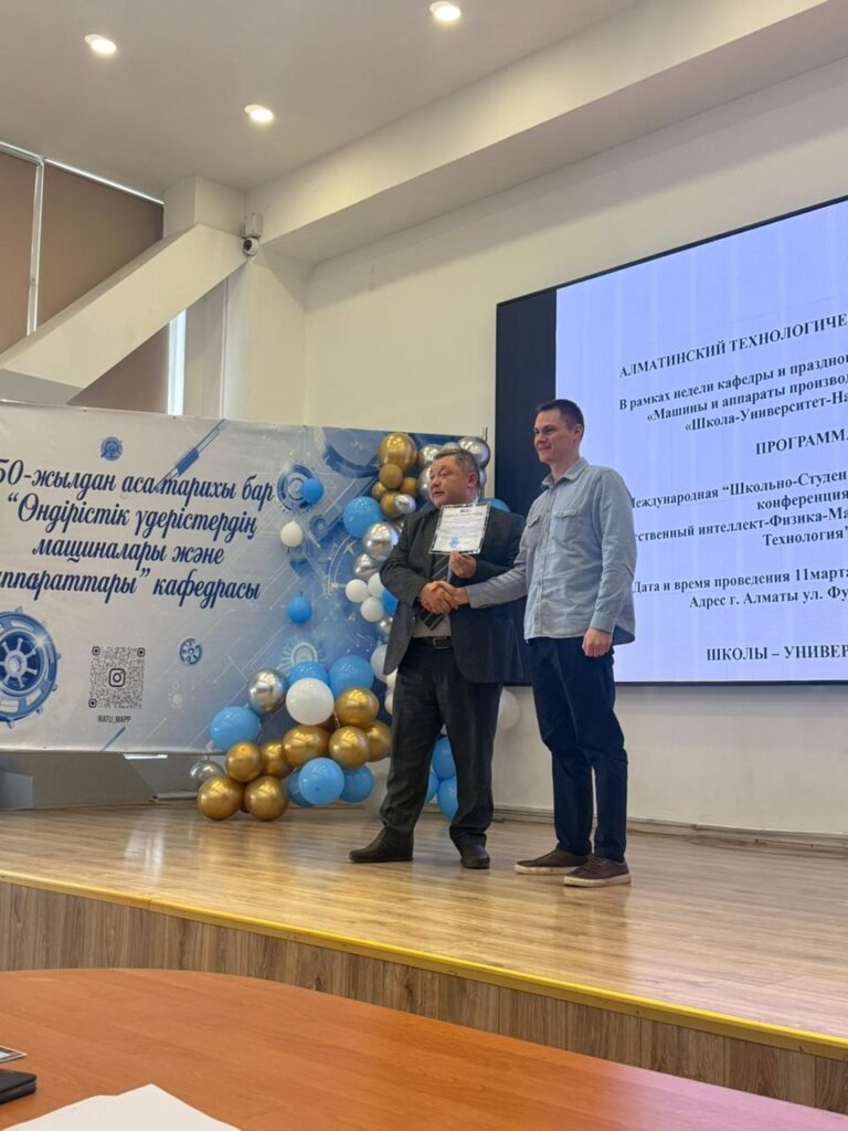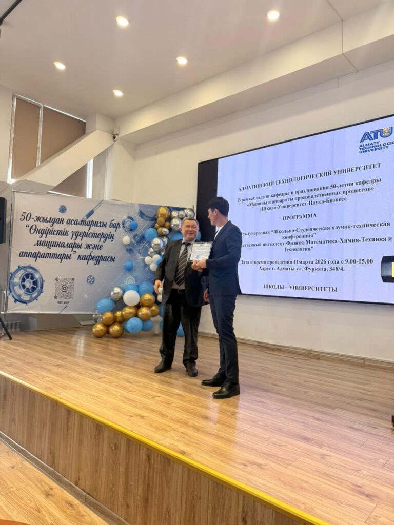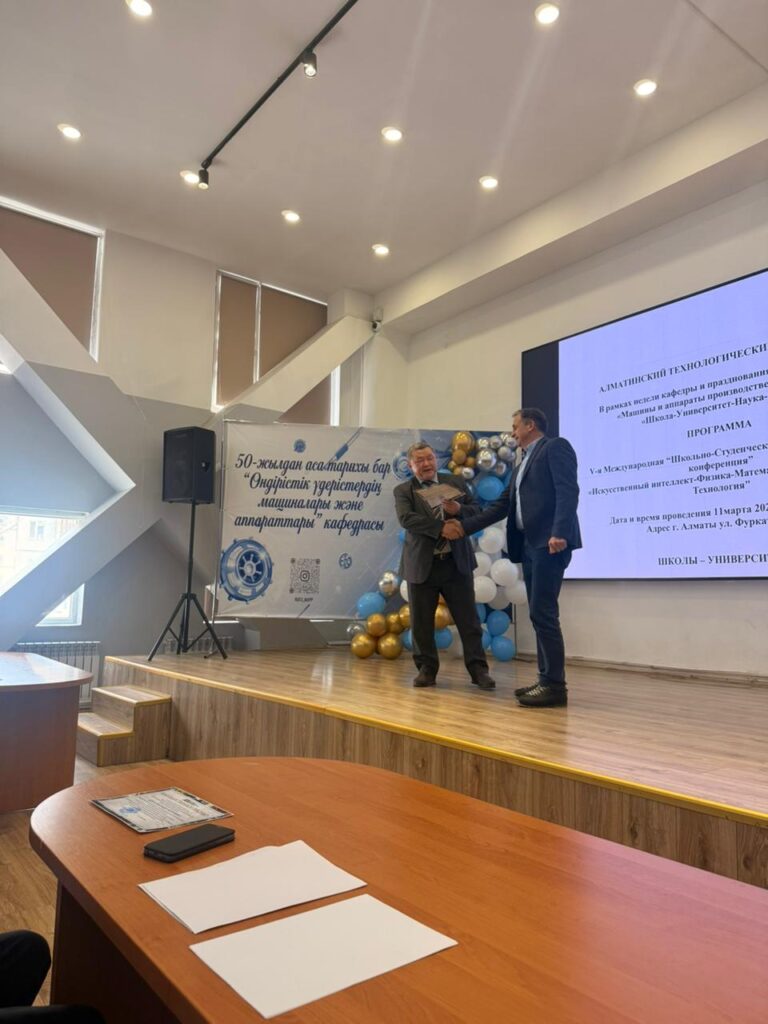 11 марта 2026 года в Алматинском технологическом университете состоялась V Международная школьно-студенческая научно-техническая конференция «Искусственный интеллект — Физика — Математика — Химия — Техника и Технология». Мероприятие прошло в рамках недели кафедры и празднования 50-летия кафедры «Машины и аппараты производственных процессов».